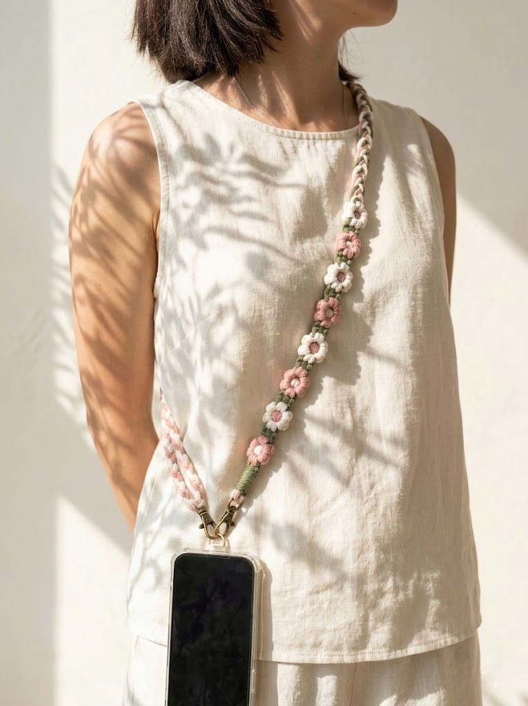✅ No more dropped phones or frantic searches in your bag. This strap gives you quick access to your device and frees your hands. It blends function with a sweet, handmade look.