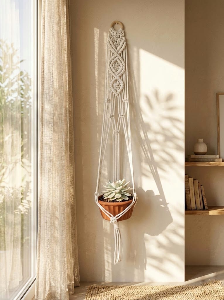 ✅ No more wrestling with bulky stands or drilling holes for brackets. This hanger holds your pot securely, frees up space, and brings a warm, boho vibe to your home. You get a simple way to display plants while adding a layer of handmade charm to your décor.