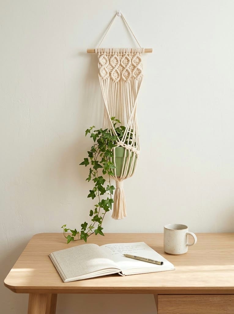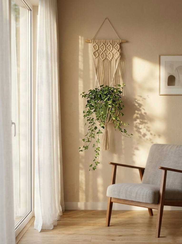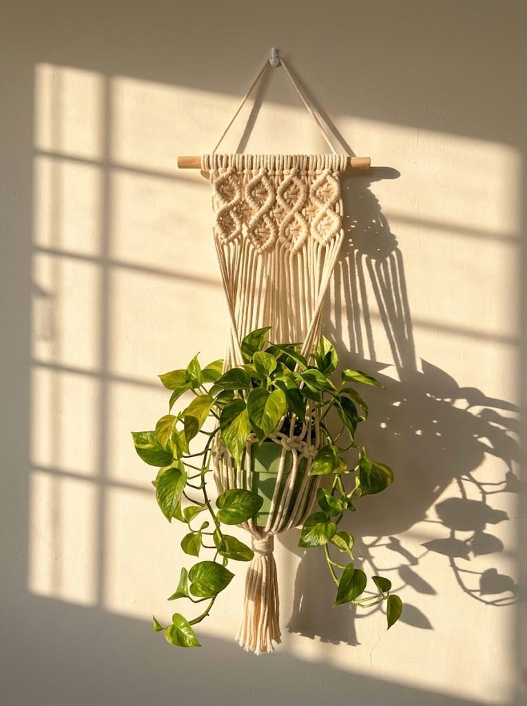 ✅ This Macrame Plant Hanger lifts your plant off the surface, saving space while adding a warm, boho accent to any wall or window.